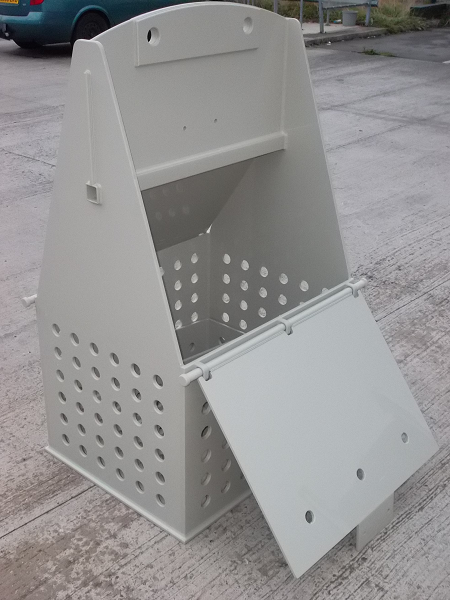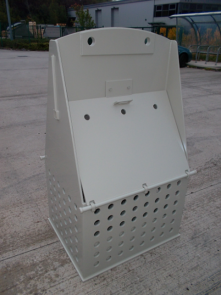 A polypropylene acid dipping basket for aircraft parts C/W removable internal work support fixture.