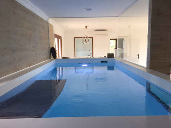 Hydrotherapy pool measuring 4m x 2m, complete with ramp and window.