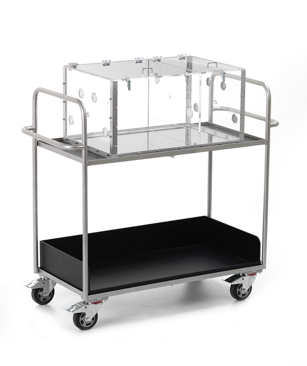 30mm Mild Steel Round Tube Trolley, Powdered coated finish C/W polypropylene internal shelf.