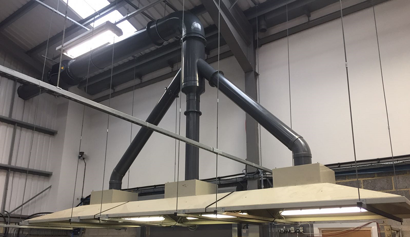 Polypropylene Overhead Fume Extraction Hood C/W Sectional PVC Ductwork