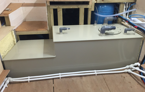 Canal Narrowboat waste tank fitted in position. Shaped to customer’s specification.